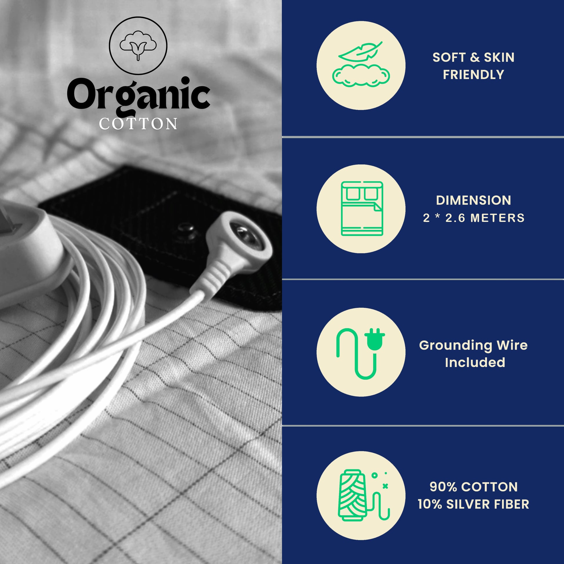 Connect to Wall: Plug the other end of the cable into your Australian plug adapter, then insert the adapter into a wall socket. - EARTHING GROUNDED BED FLAT SHEETS: Our grounding sheets are 2 x 2.6 meters, providing a comfortable and healthy sleep experience. This size is perfect for Full XL, and Queen.